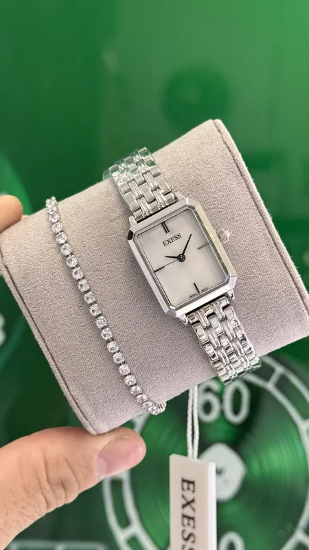 סט שעון מלבני לאישה דגם אקסס EXESS וצמיד טניס
